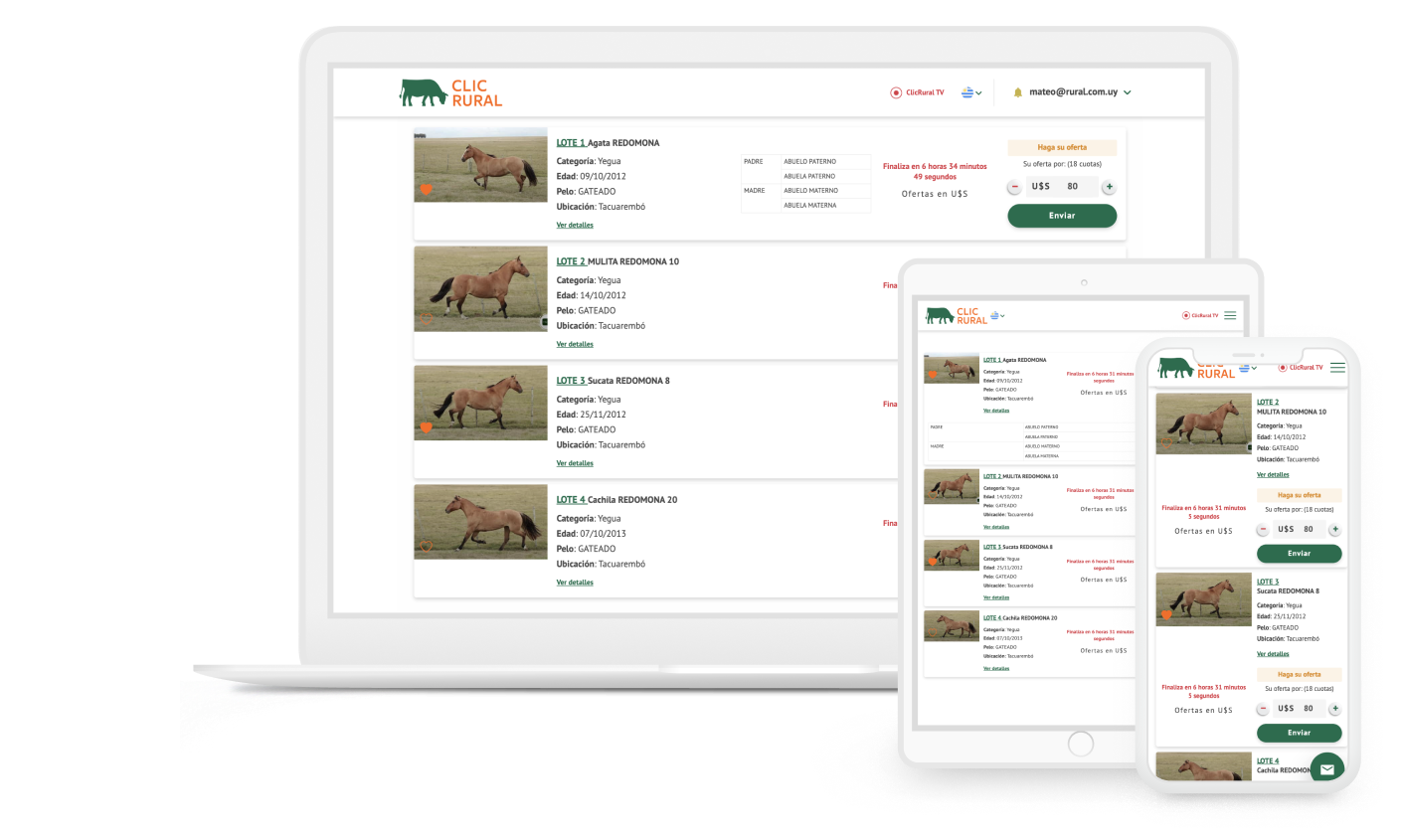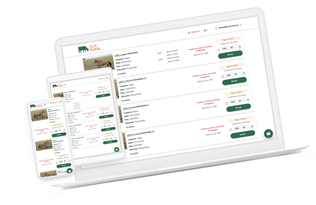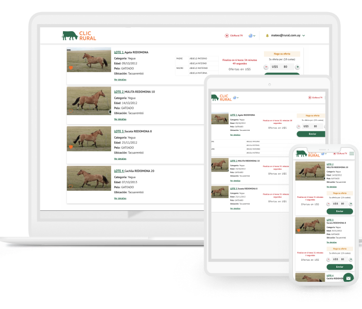 Todos los lotes del remate están precargados en la web para que los compradores puedan ver los lotes previos a un remate y ofertar por ellos con anticipación.