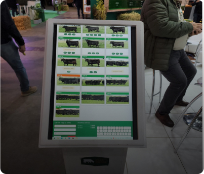 Todos los lotes del remate están precargados en el Totem para que los compradores puedan ver a los animales y ofertar por ellos previo al inicio del remate de manera offline.